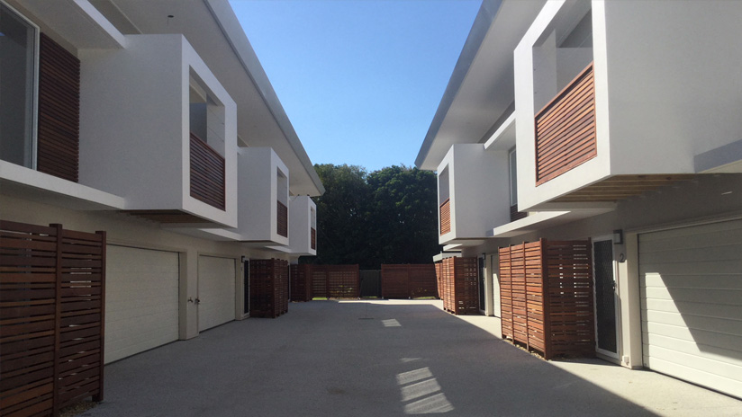 An architecturally designed, modern townhouse project, Belongil involved a mix of technical elements for our team including large angular roof structures, large open voids, non-standard engineering and custom finishes. Our team provided a full turn-key solution for our client, including construction of a bulk gas storage and refuse facility to service the development. We were able to realise the architect's and the client's vision for this high quality development which was fully pre-sold prior to commencement on site.