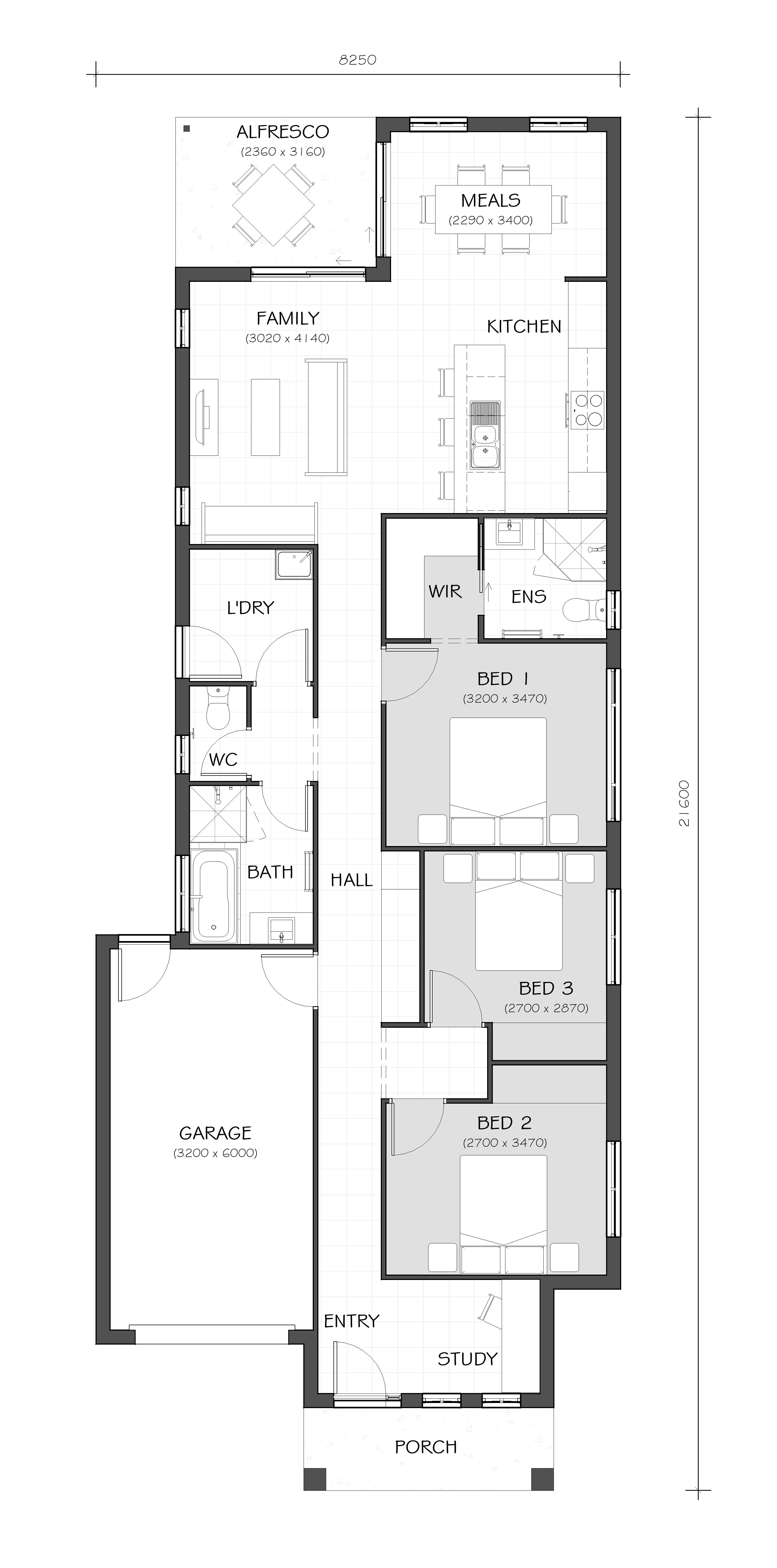 Unlike most 150sqm 3 bedroom homes, the Kentucky still has it all with a large master bedroom with walk-in robe and ensuite, second bathroom with separate toilet, expansive linen/storage cupboard, full sized laundry, kitchen with island bench overlooking the meals, family and alfresco areas. The home is perfect for young families or first home buyers.